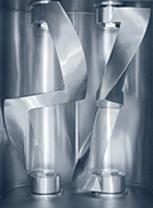 Лопасти двухроторного смесителя могут быть различной конфигурации Такое расположение, а также наличие в лопастях цилиндрических отверстий создает условия для эффективного получения однородной массы из смешиваемых компонентов, поступающих в корпус через решетку при открытой крышке. Валы вращаются в опорах и приводятся в движение от электродвигателя, через ременную передачу и специальный редуктор, либо на каждый вал может быть установлен свой мотор-редуктор.